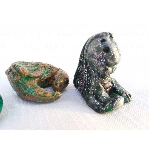 Factual Facts: Numismatic dragon sculptures are tiny collectible cast resin sculptures of my own design, which I hand paint and encase in hatchable eggs. There are several poses, but the one you get in your egg is a surprise, and some are rarer than others. You have to break the egg to see which one you get! They measure approximately an inch long or tall and come with instructions for care.